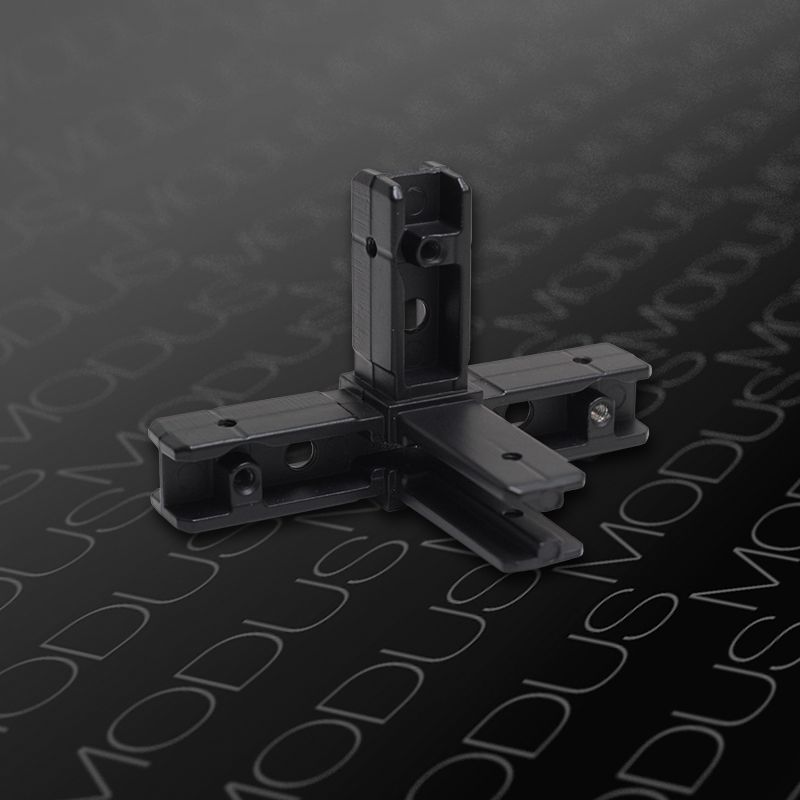 Для сборки системы мы предлагаем три вида профилей и соединительные углы, позволяющие создавать любые конструкции. Одноуровненые и многоуровневые каркасы системы MODUS можно моделировать как со стеклянными, так и с деревянными полками.